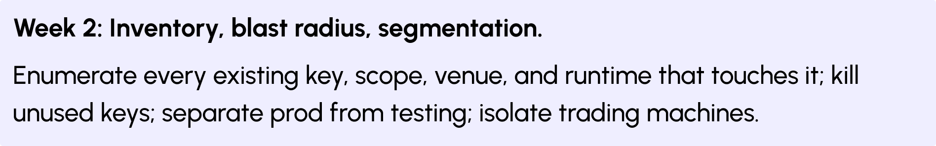 - Rotation ≠ Remediation. Rotating a key without fixing the runtime leak just resets the attacker’s timer. Most exchanges don’t enforce MFA on API calls; once a key is live, bearer semantics take over.